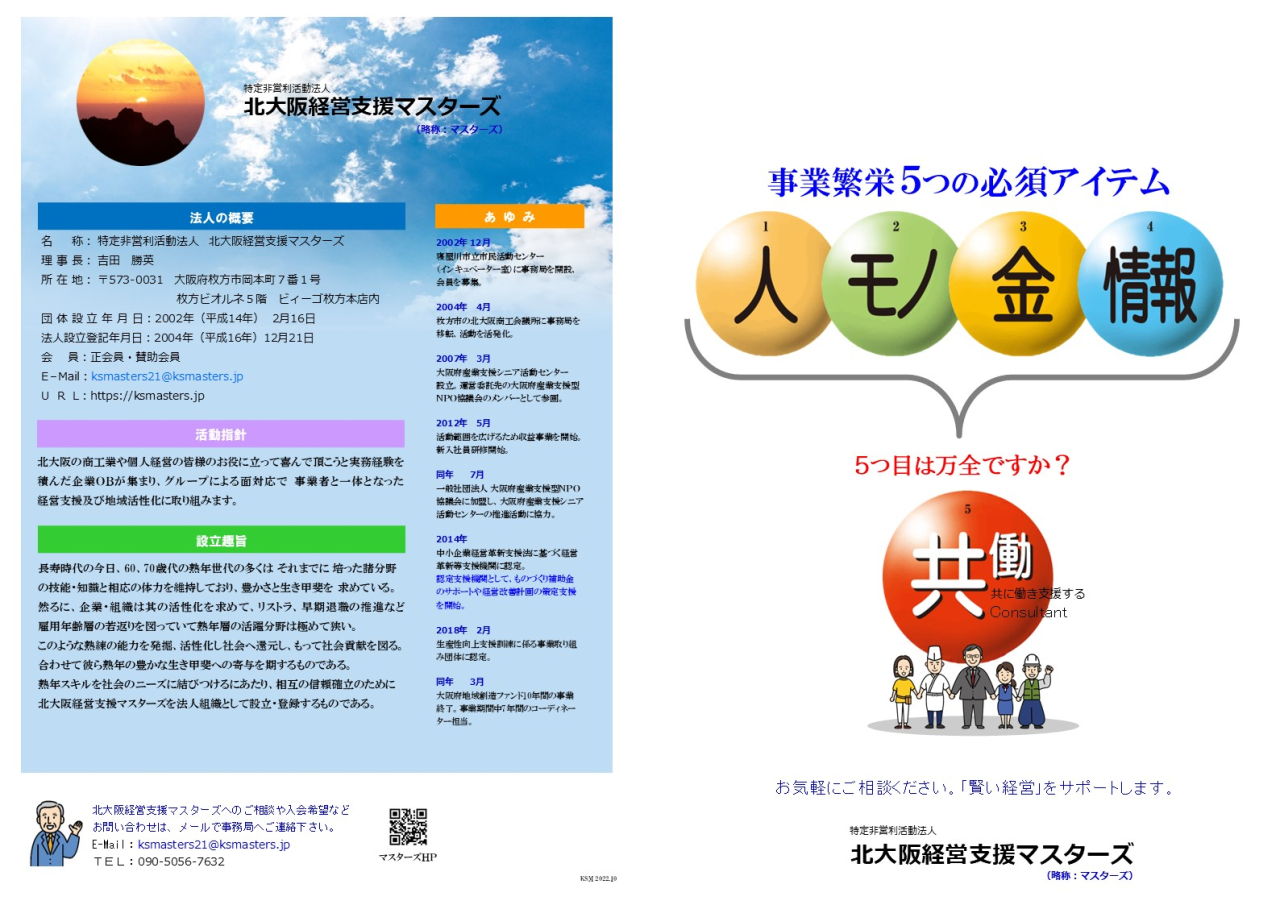 | 名称 | 特定非営利活動法人 北大阪経営支援マスターズ |